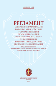 Регламент совершения нотариусами нотариальных действий, устанавливающий объем информации, необходимой нотариусу для совершения нотариальных действий, и способ ее фиксирования (в редакции от 24.11.2021 № 223) 2022
